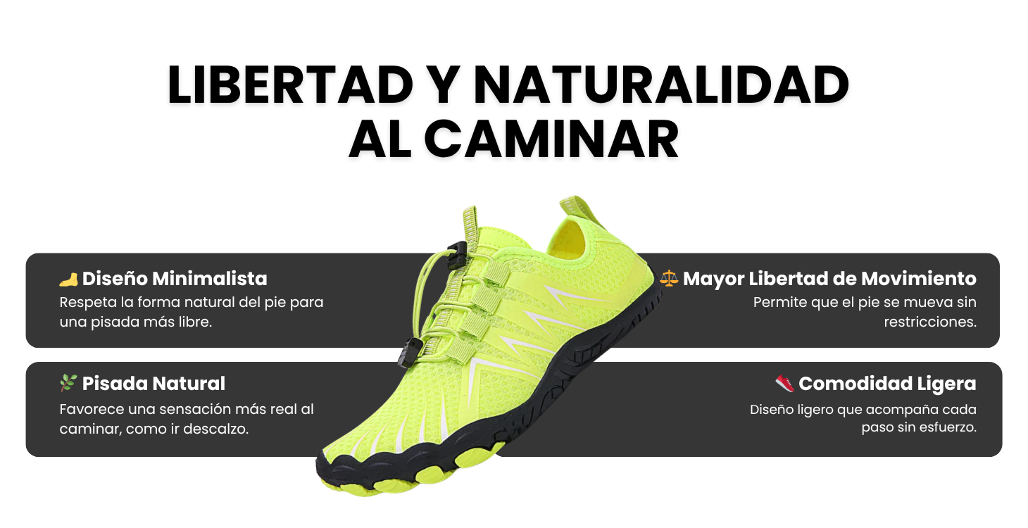 Calzado minimalista diseñado para respetar la forma natural del pie. Permite mayor libertad de movimiento y una sensación de pisada más natural.