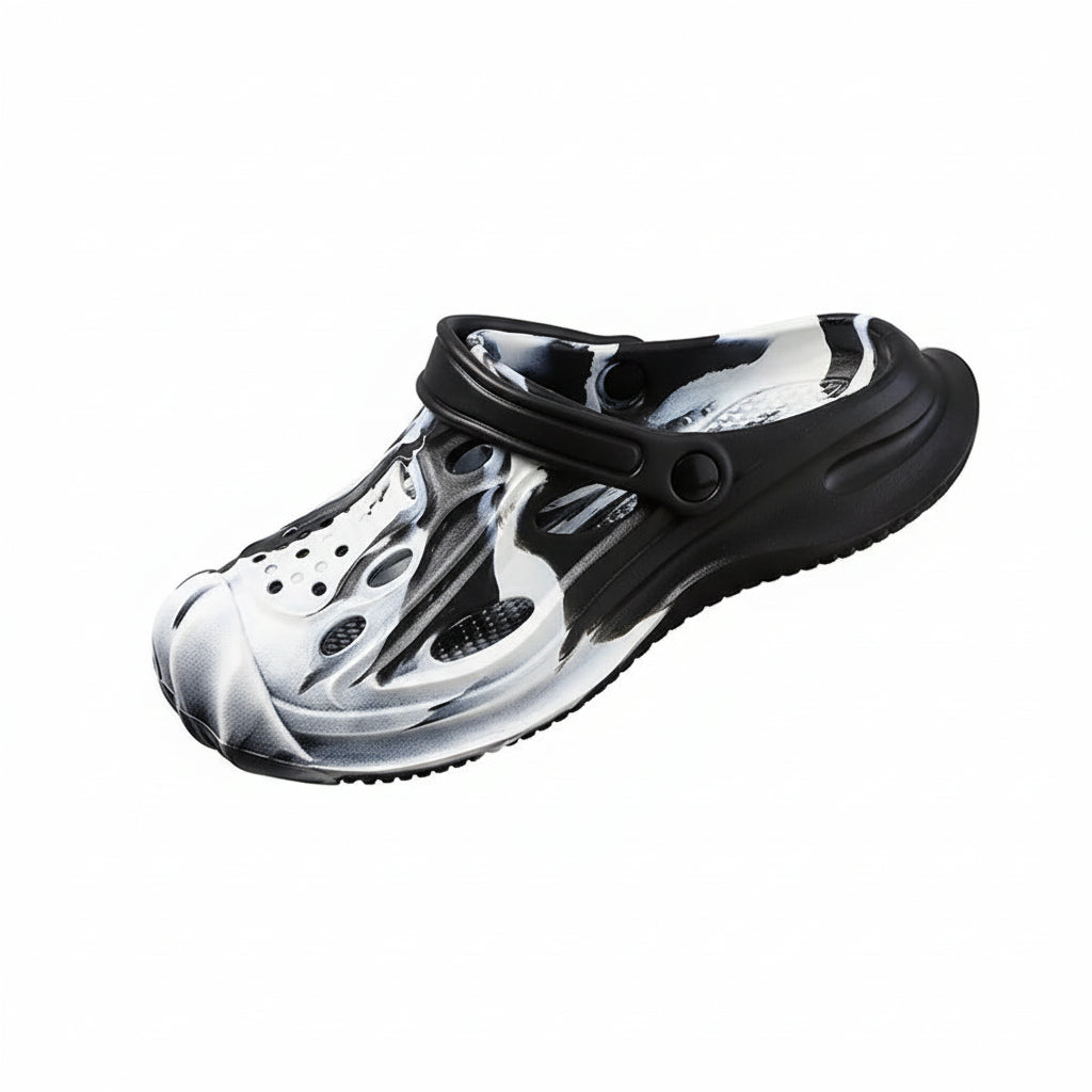 Fabricados con material EVA flexible y resistente, estos zuecos ofrecen una pisada cómoda y amortiguada, ideal para caminar durante horas sin molestias. Gracias a su peso ultraligero, se adaptan perfectamente al uso diario tanto en interior como en exterior.