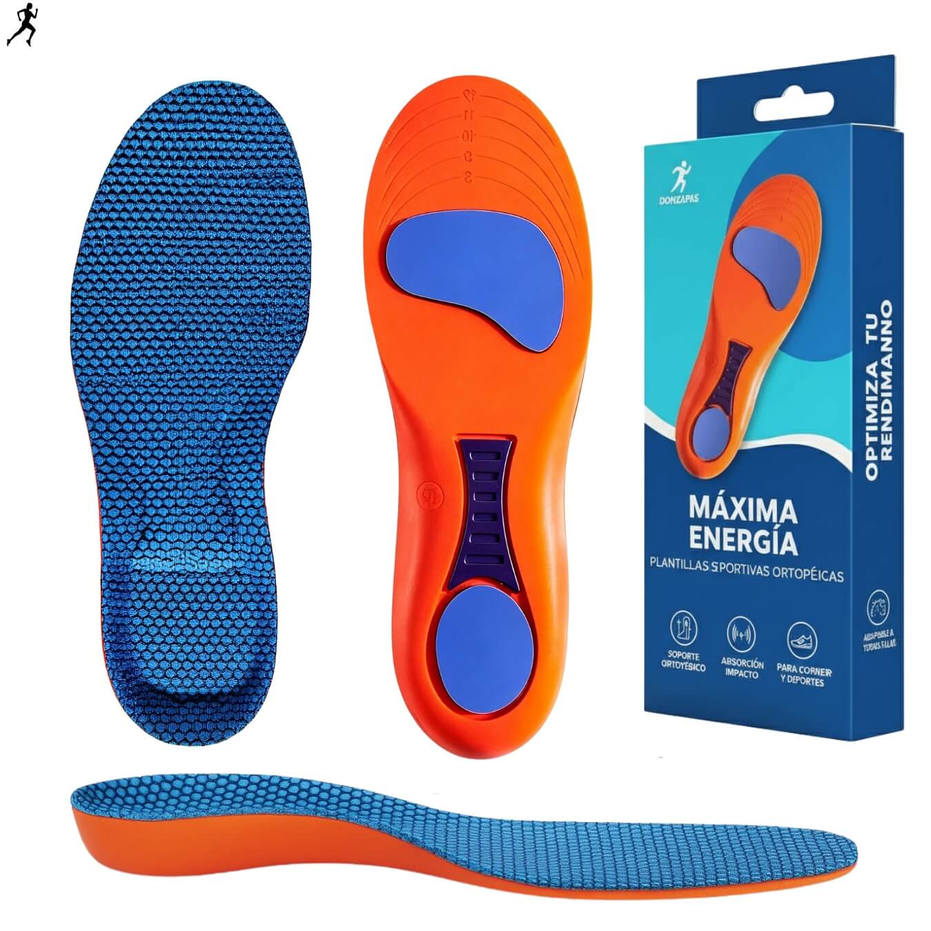 - Características: Plantillas Antideslizantes, amortiguadoras, transpirables, resistentes al sudor, con soporte ortopédico.