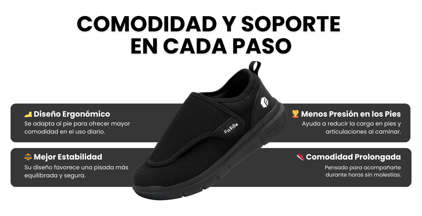 Calzado ergonómico pensado para ofrecer soporte y comodidad en cada paso. Su diseño ayuda a mejorar la estabilidad y reduce la presión en pies y articulaciones.